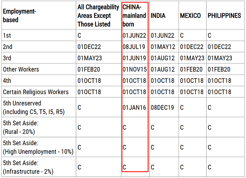 关于中国大陆出生的EB-5申请人特别关心的表A: