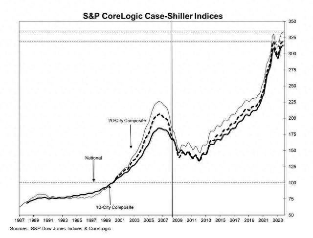 标普凯斯-席勒指数显示,2023年10月,其涵盖的20个美国城市有8个处于历史最高房价,分别是亚特兰大、夏洛特、迈阿密、纽约、芝加哥、底特律、波士顿和克利夫兰,其房价涨幅同比都在5%以上。